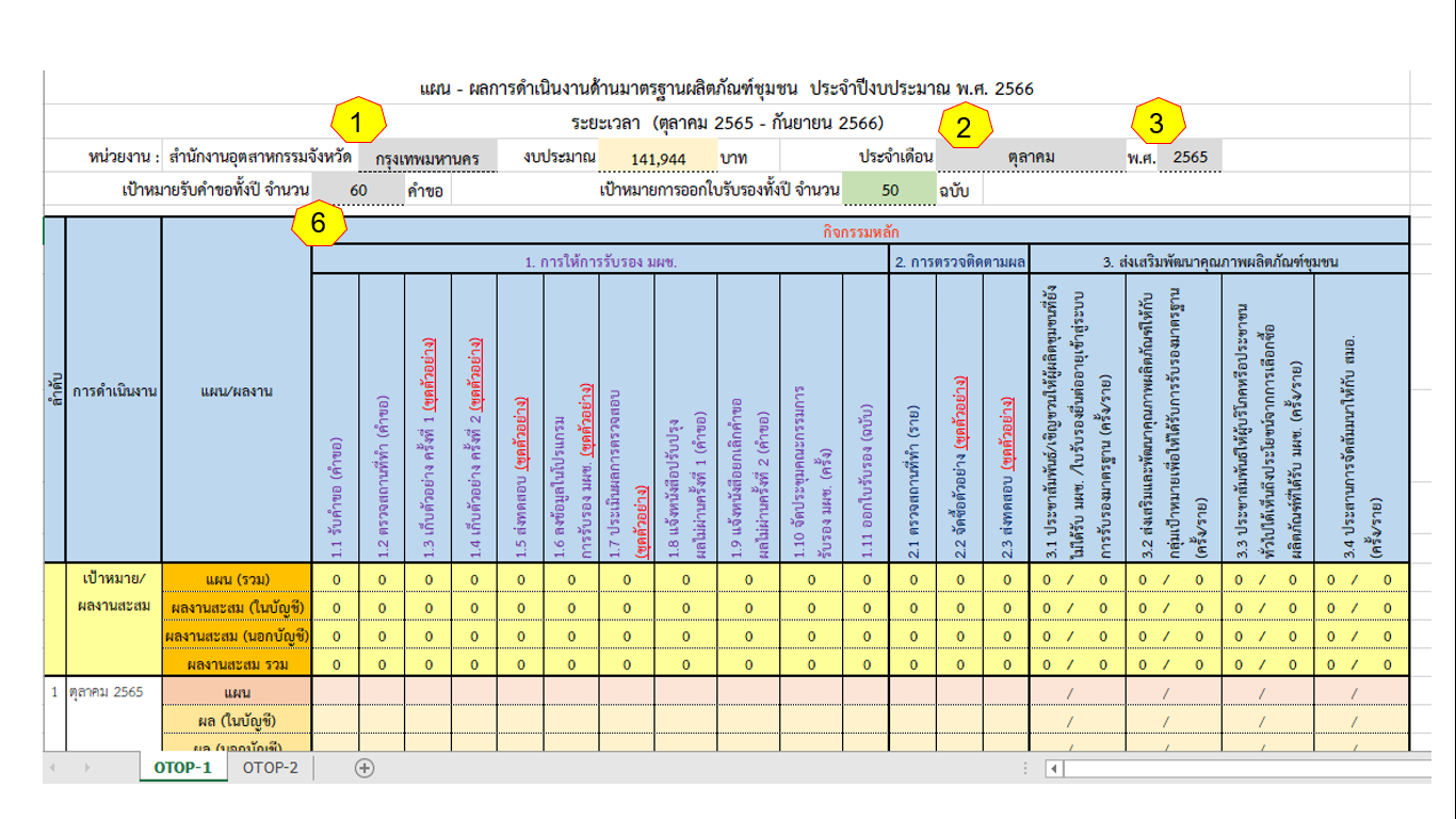 ไฟล์รายงานผลการดำเนินงานเเละผลการใช้จ่ายเงินด้าน มผช. (OTOP 1-2) ประจำปีงบประมาณ พ.ศ. 2566 มีการปรับเเก้ไขเเบบฟอร์ม